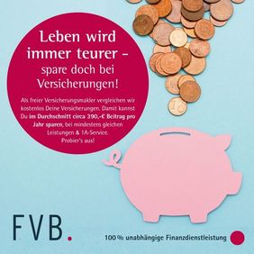 Wenden Sie sich für einen Versicherungs-Check einfach an unsere*n FVB-Makler*in. Wir vergleichen kostenlos – Sie sparen Bares. Probieren Sie es aus!